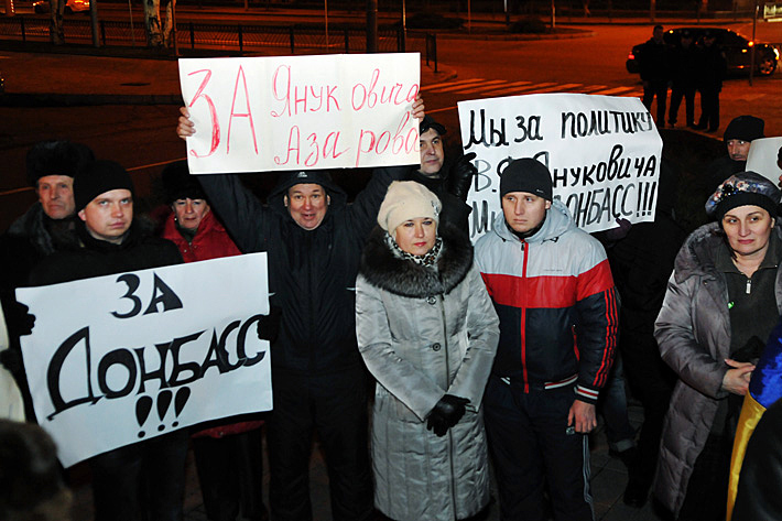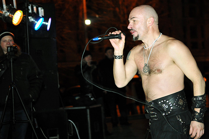 Сегодня, 12 января, на донецком Евромайдане выступила казак-рок-формация "Гайдамаки". На площади перед памятником Шевченко собралось около двухсот человек. Послушать концерт пришли также десяток сторонников "стабильности, Януковича и Азарова". Фото: Михаил Масловский, ОстроВ.