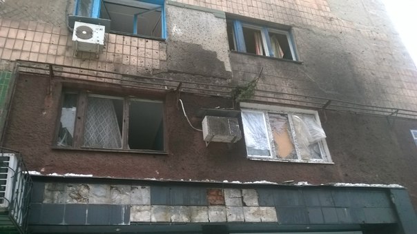 На фотографии отчетливо видно, что артиллеристский удар пришелся на фасад городской поликлинической больницы № 27, который смотрит на Донецк. Таким образом, снаряды или мины были выпущены с территории города, подконтрольной террористам.