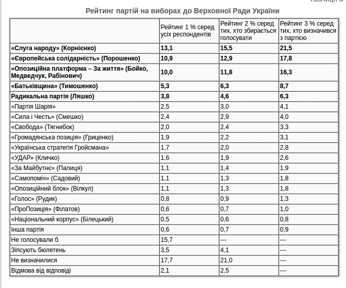 Наибольшие шансы попасть сейчас в парламент, если бы выборы проходили в сентябре, имеют партии «Слуга народа», «Оппозиционная платформа - За Жизнь», «Европейская солидарность». Это следует из результатов опроса Киевского международного института социологии, проведенного 12-16 сентября.