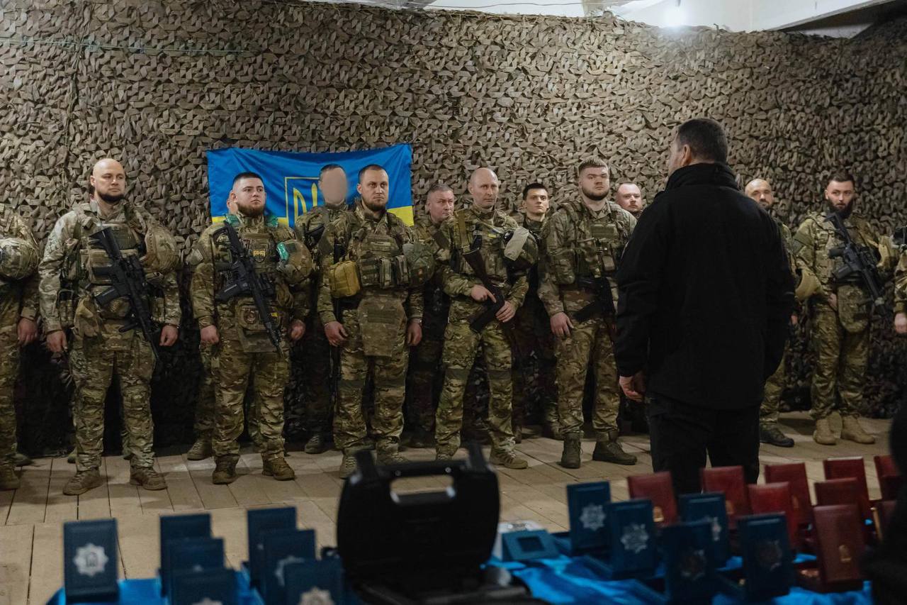 «Провёл оперативное совещание с командирами боевых подразделений Национальной гвардии, Госпогранслужбы и полиции. О ситуации на направлениях доложил командир 1-го корпуса НГУ “Азов” Денис “Редис” Прокопенко. Обсудили боевую обстановку, обеспечение и потребности подразделений», — отметил Клименко.