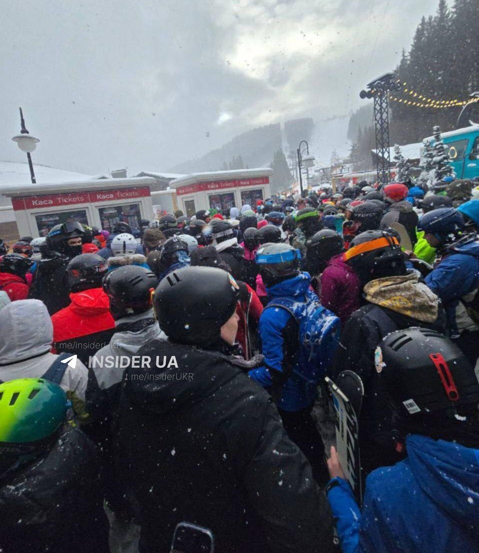 «Большие очереди на подъемники в Буковеле прямо сейчас - сегодня стартовал лыжный сезон», - сообщает 28 декабря Телеграм-канал Insider.uа.