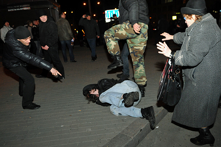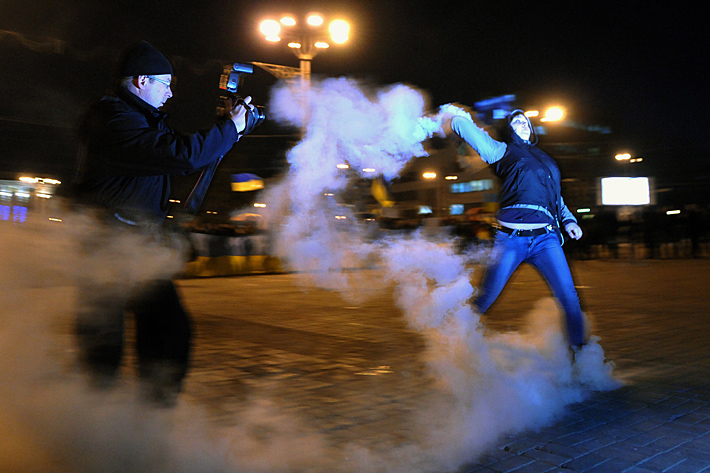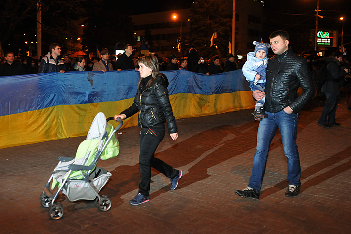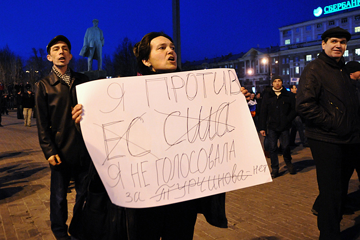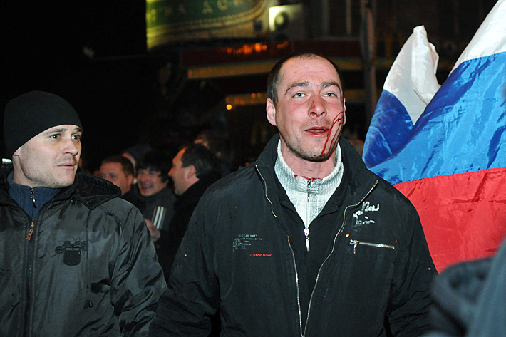 В результате массового столкновения между участниками двух митингов на площади Ленина в Донецке погиб один человек. По официальным данным на 10 часов утра пятницы в больницах находится 26 человек. Фото: Михаил Масловский, ОстроВ.