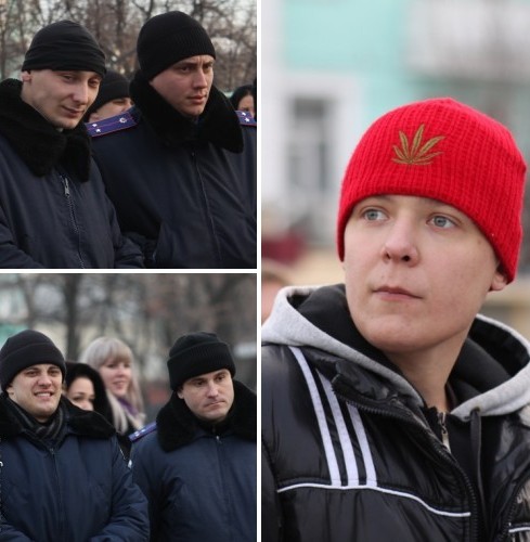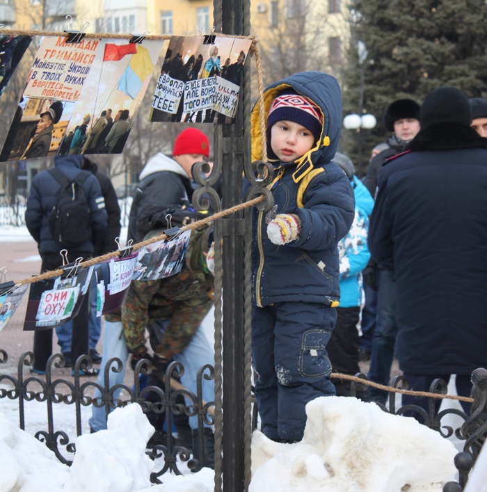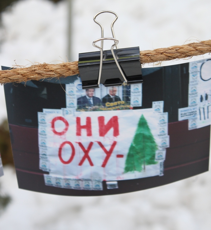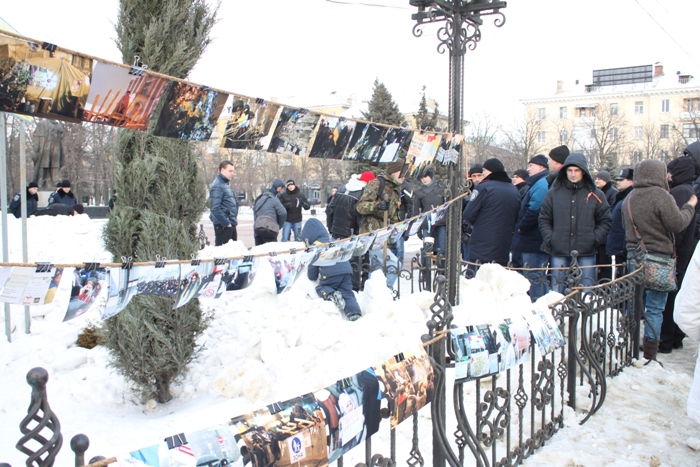 Однако, со стороны мероприятие выглядело не как «фотосушка», а, скорее, как субботник. Луганские активисты евромайдана, развесив фотографии, стали убирать снег на площади около памятника Шевченко.