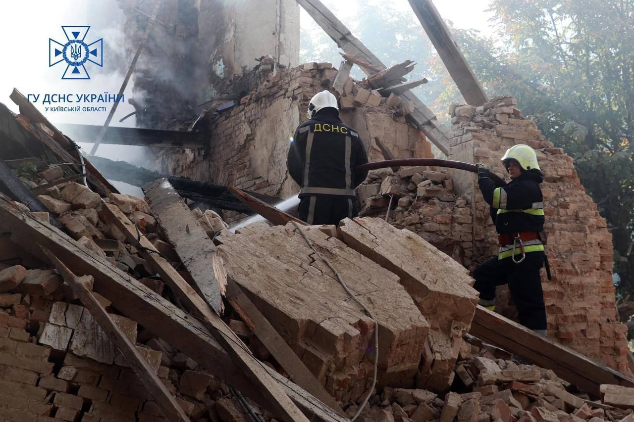 "Спасателями ликвидированы пожары на месте удара дронами-камикадзе в г.Белая Церковь", - говорится в сообщении.
