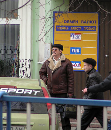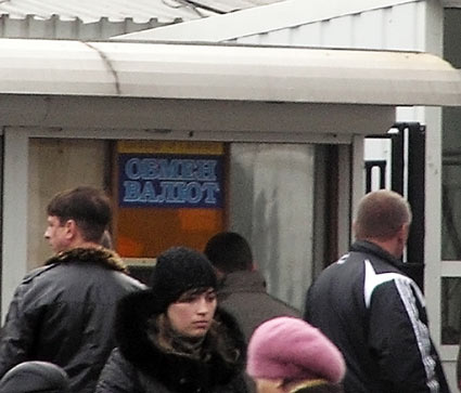 Сегодня, 5 декабря, часть валютных киосков Луганска, не имеющих опознавательных знаков и зримой «привязки» к какому-то конкретному банку, работали без указания курсов валюты. На вопрос корреспондента «Острова» работники обменных пунктов отвечали грубо: «А вам какое дело?»