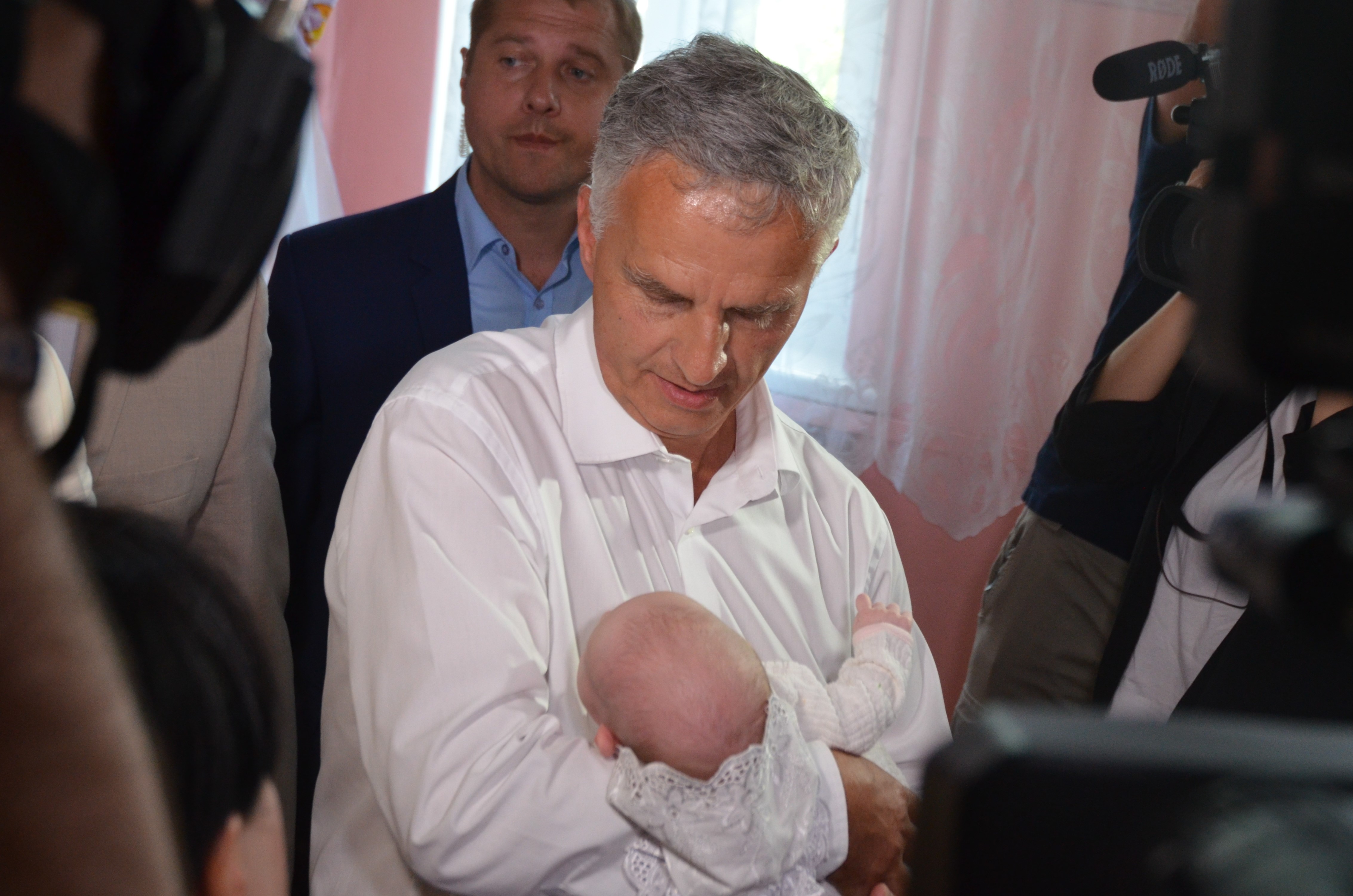 Буркхальтер посмотрел родовое отделение больницы и детские отделения травматологии, неврологии и педиатрии. В каждом отделении он пообщался с маленькими пациентами и вручил им подарки.