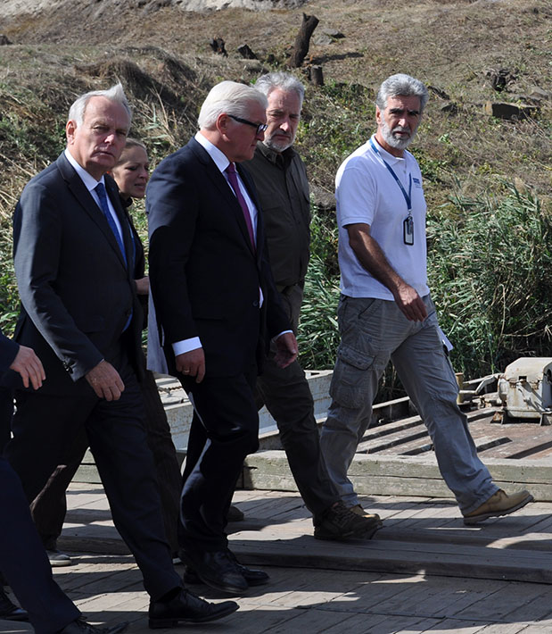 Первым пунктом визита глав МИД в регион стал офис ОБСЕ в Краматорске. На фоне вопроса о том, как вдохнуть новую жизнь в минский процесс, Штайнмайер и Эро хотели из первых рук получить представление о ситуации на востоке Украины, а также поблагодарить миссию ОБСЕ за работу в зоне конфликта.