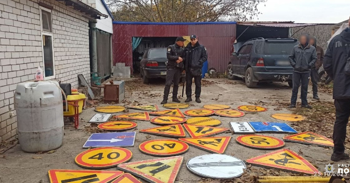 В полиции рассказали, что обнаружили во дворе местного жителя 18 металлических опор и 31 дорожный знак.