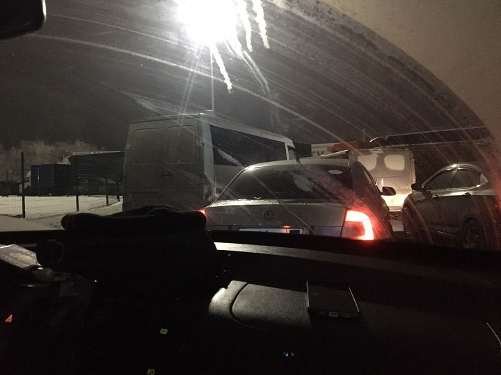 "Граница между РФ и "ДНР", (нелегально работающий – "ОстроВ") КПП "Успенка", вереница грузовых и легковых автомобилей растянулась на несколько километров!", - пишет он.