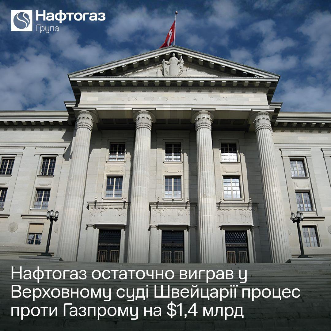 "Нафтогаз" окончательно выиграл в Верховном суде Швейцарии дело против "Газпрома" на более чем $1,4 млрд. Суд полностью отклонил попытку "Газпрома" отменить арбитражное решение от 16 июня 2025 года. Оно обязывает российскую компанию выплатить "Нафтогазу" долг за услуги по организации транспортировки природного газа плюс проценты. Он также обязал "Газпром" возместить судебные расходы", - сообщает 13 марта Телеграм-канал "NaftogazUA" со ссылкой на председателя правления НАК "Нафтогаз Украины" Сергея Корецкого.