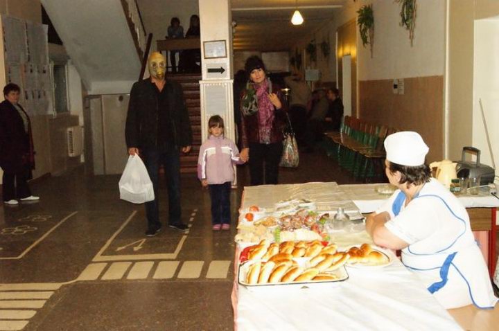 Сотни жителей Мариуполя Донецкой области пришли в противогазах и марлевых повязках на голосование на избирательные участки 28 октября. Так они выразили свою поддержку акции «С противогазом - на участок», - сообщает сайт 0629.