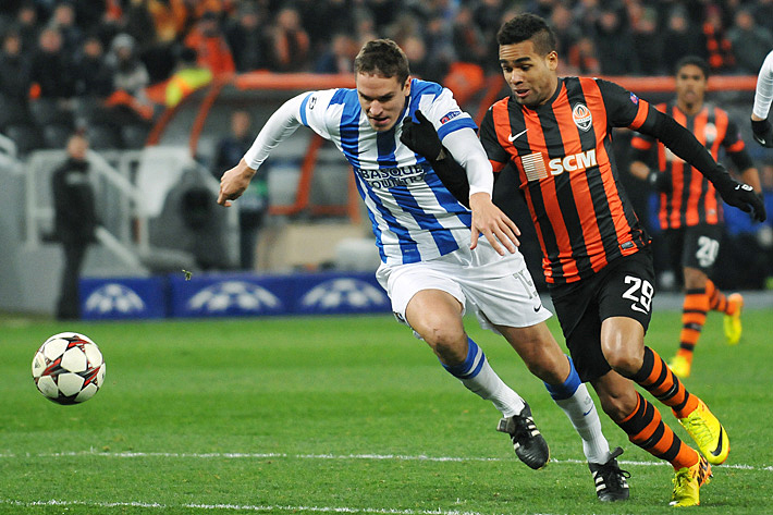 В матче пятого тура группового этапа Лиги Чемпионов донецкий "Шахтер" на своем поле забил четыре безответных мяча в ворота сан-себастьянского "Реал Сосьедада". Донецкий "Шахтер" провел свой последний домашний поединок в рамках группового этапа Лиги Чемпионов. Любопытно, что в этом турнире "Шахтер" уже в течение четырех игр не мог порадовать победой родные стены. В частности, миром закончились два предыдущих домашних поединка (1:1 с "Манчестер Юнайтед" и 0:0 с леверкузенским "Байером"). Больше новостей о Донбассе в нашем Telegram канале Предстоящий матч с "Реалом Сосьедадом" был для команды Мирчи Луческу самым реальным шансом решительно улучшить свое турнирное положение (напомним, после четырех игр "Шахтер" занимал в группе А третью строчку с пятью очками). На предматчевой пресс-конференции Мирча Луческу пообещал, что его подопечные постараются показать класс: "Хотелось бы, чтобы мы провели этот матч на таком же уровне, как домашние игры с "Байером" и "МЮ", и чтоб удача повернулась к нам лицом", - поделился чаяниями румынский коуч перед поединком. Забегая вперед, отметим, что футбольная фортуна не осталась глуха к репликам наставника "оранжево-черных". Стартовый состав несколько удивил. Луческу с первых минут выпустил на поле неожиданную пару центральных полузащитников: Тараса Степаненко и Фреда. Обоим игрокам до этого не доводилось выходить в матче Лиги чемпионов в основе, довольствуясь ролью выходящих на замену. В среду погода подарила болельщикам и футболистам, пожалуй, один из последних сухих и относительно теплых вечеров. Тем не менее, аншлага на "Донбасс Арене" не наблюдалось: более шести тысяч мест так и не дождались своих зрителей. Впрочем, присутствовавшие на матче болельщики с возложенной на них функцией "двенадцатого игрока" справились более, чем успешно. Выход "Шахтера" на поле был встречен морем оранжевых флажков, которые организаторы заботливо положили на каждое сиденье. По ходу игры противоположные трибуны не раз устраивали "перекличку", по очереди скандируя "Шахтер" и "Донецк". Фан-сектор в очередной раз порадовал всесезонными танцами с голым торсом и очередным креативным баннером: суровый ухмыляющийся человек в зеленом капюшоне, с молотками в обеих руках. И действительно, команда из Страны Басков довольно быстро попала под жесткий прессинг. На стартовых минутах "Шахтер" усыпил бдительность соперника, позволив тому немного повладеть мячом. Однако, приглядевшись к манере игры "Реала Сосьедада, "горняки" живо прибрали инициативу к рукам и стали играть в свой, столь любимый болельщиками, футбол. В середине тайма счет мог открывать Дарио Срна. Капитан смачно приложился к мячу со штрафного, но попал в перекладину. Но уже в следующем эпизоде чилийскому вратарю гостей Клаудио Браво пришлось достать мяч из сетки. Дуглас Коста подсуетился при розыгрыше углового, переправив мяч во вратарскую, прямо под ноги Луису Адриано. Тот, в свою очередь, пробил в одно касание, попал в штангу, но рикошет оказался в пользу "Шахтера", и мяч-таки залетел в ворота. Второй гол "горняков" многие болельщики не увидели. Дело в том, что это взятие ворот состоялось в самом начале второго тайма, и не все зрители уже успели вернуться из теплых подтрибунных помещений на свои места. "Шахтер" же продемонстрировал полную боеготовность с первых же секунд новой сорокап