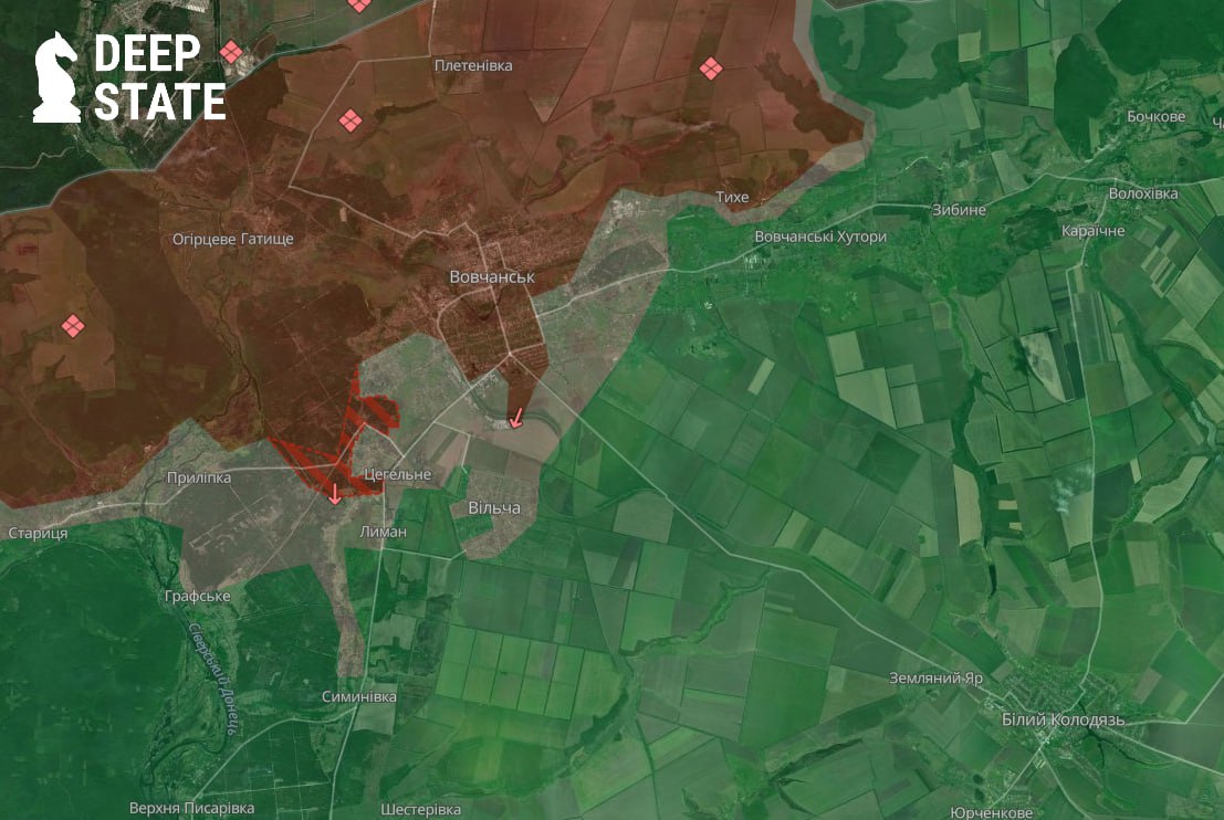 «Противник продолжает свое давление в районе Волчанска. В последнем обновлении было продвижение возле Синельниково и Цегельного. Также увеличилась серая зона в Вильче», - сообщил аналитический проект DeepState 23 января.