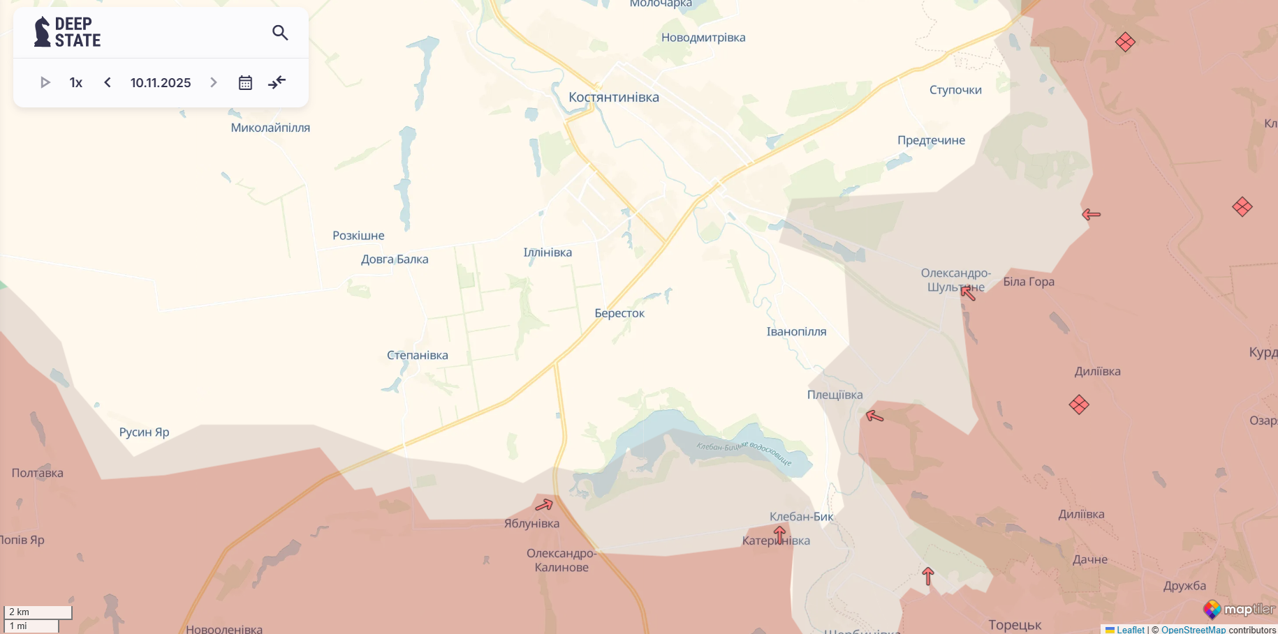 «Карта обновлена. Враг оккупировал Катериновку и Новониколаевку, а также продвинулся вблизи Александро-Калинового, Променя, Солодкого, Нового и Яблочного», - сообщает аналитический проект DeepState 11 ноября.