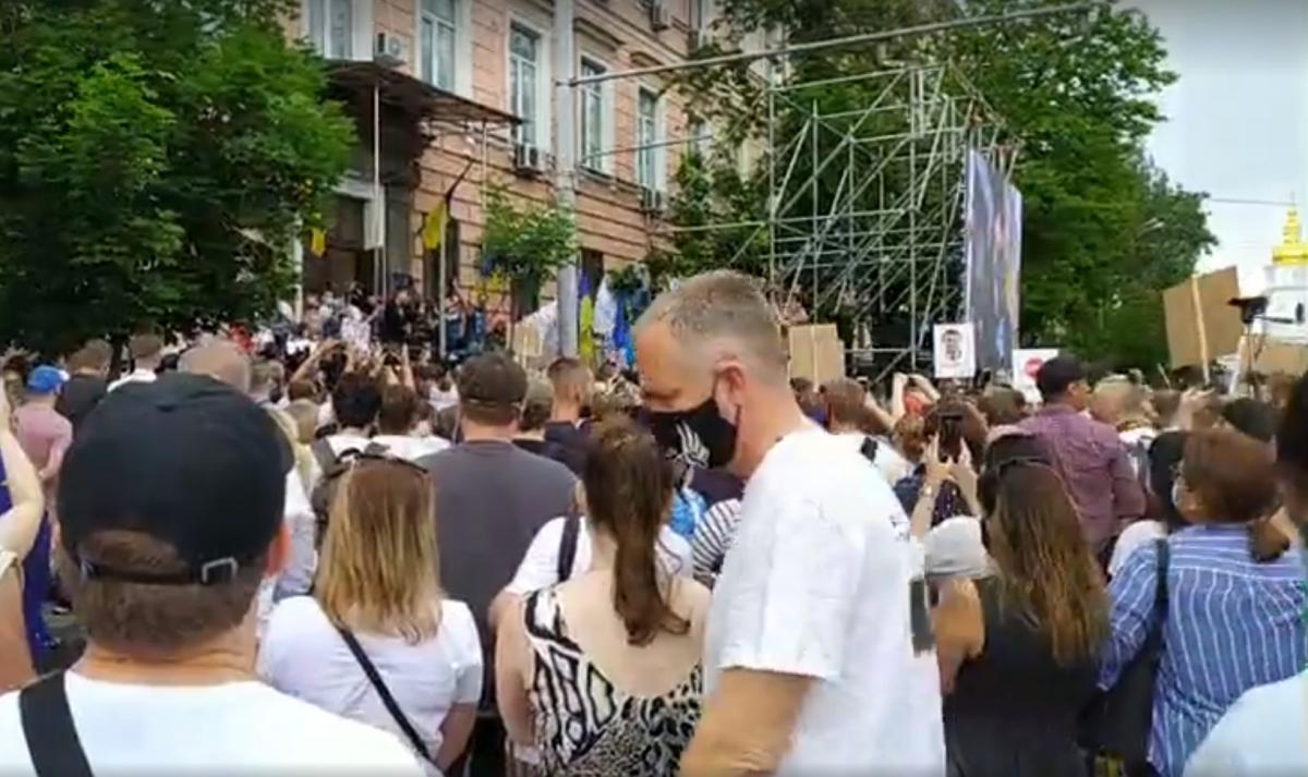 У входа в суд стоит сцена со звуковой аппаратурой и большим экраном. Со сцены выступают люди в поддержку Порошенко. Также у здания суда собралось много правоохранителей, однако спецназовцев в защитных доспехах пока не видно. Движение по Владимирскому проезду закрыто для автомобилей из-за того, что участники акции разместились на проезжей части.