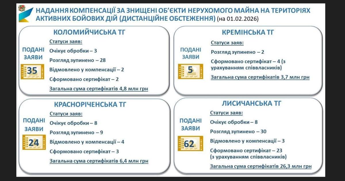 - 29 заявлений рассмотрено комиссиями. По итогам сформировано 32 сертификата (с учетом совладельцев) на сумму 41,1 млн грн;