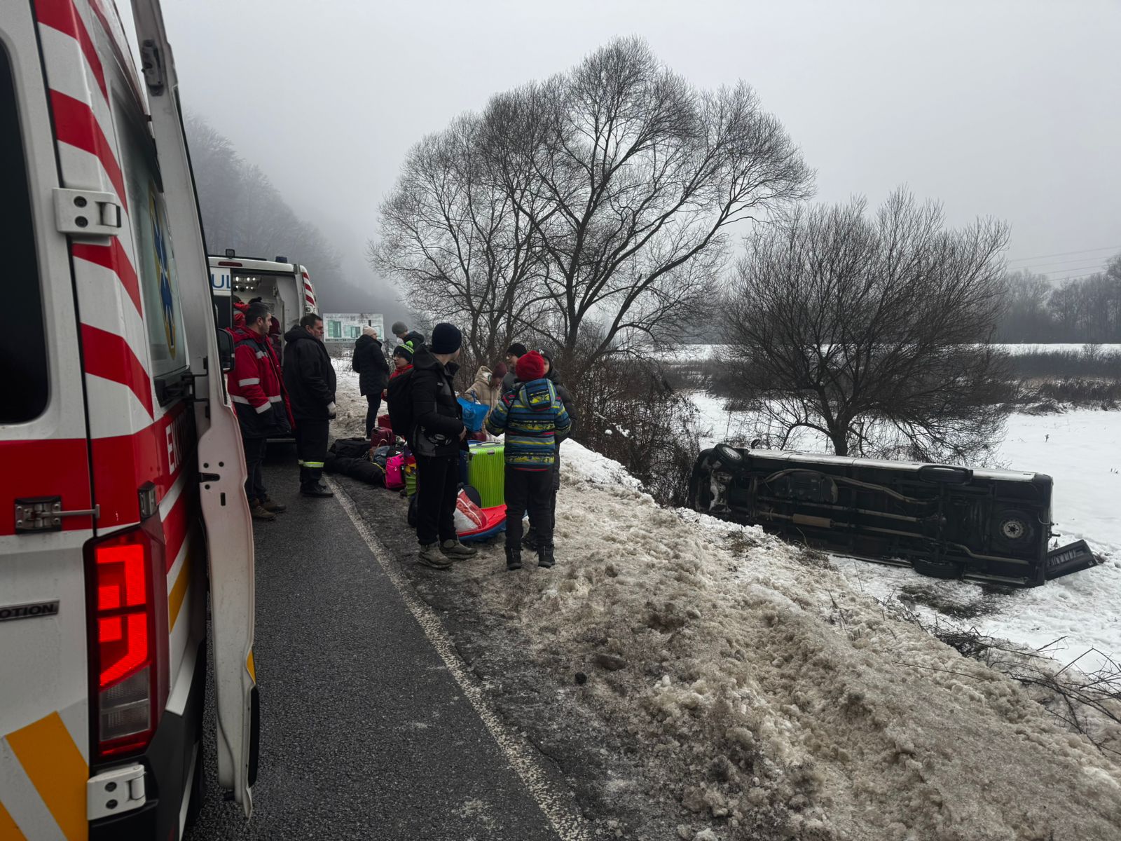 Уточняется, что дети из Киева ехали в Карпаты на отдых, но из-за гололеда микроавтобус Mercedes Sprinter съехал с трассы и перевернулся на бок.
