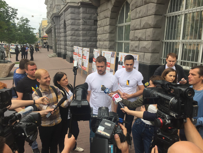 Движение "Альтернатива" провело перед зданием СБУ в Киеве акцию с требованием наказать чиновников, которые были проводниками "русской весны" и не понесли никакого ответственности.