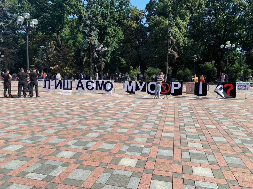 Митинг пока не начался, но его активисты уверяют, что будут стоять до конца, то есть до положительного решения об отставке Арсена Авакова без последующего его переназначения.