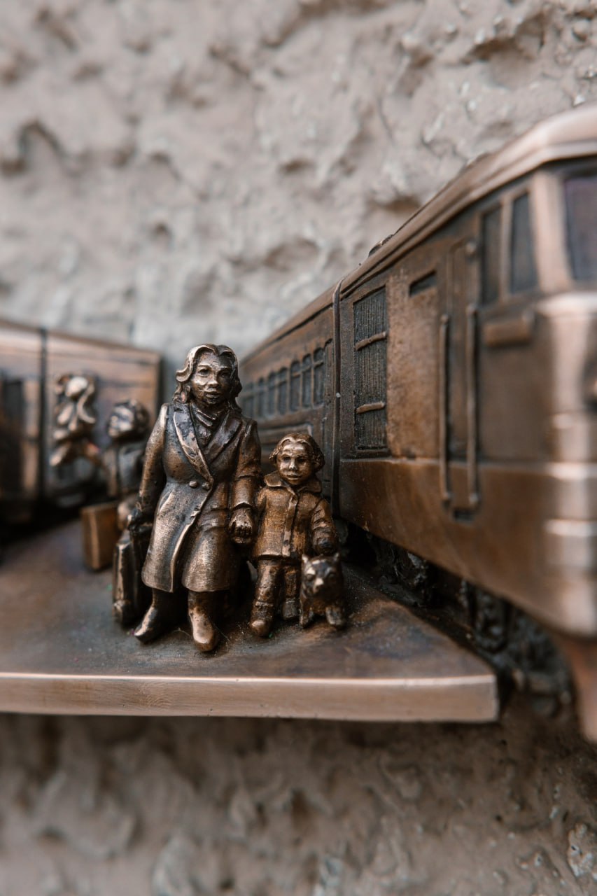1 ноября на Центральном железнодорожном вокзале Киева открыли бронзовую скульптурку «Возвращение домой», посвященную теме возвращения украинцев. Минискульптура — два поезда, прибывающих на первую платформу «железных ворот» Киева. Один из поездов – с военными из Краматорска, другой – из-за границы.