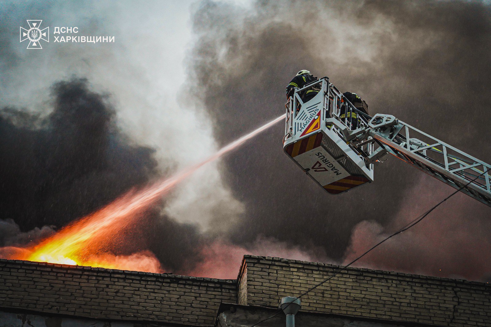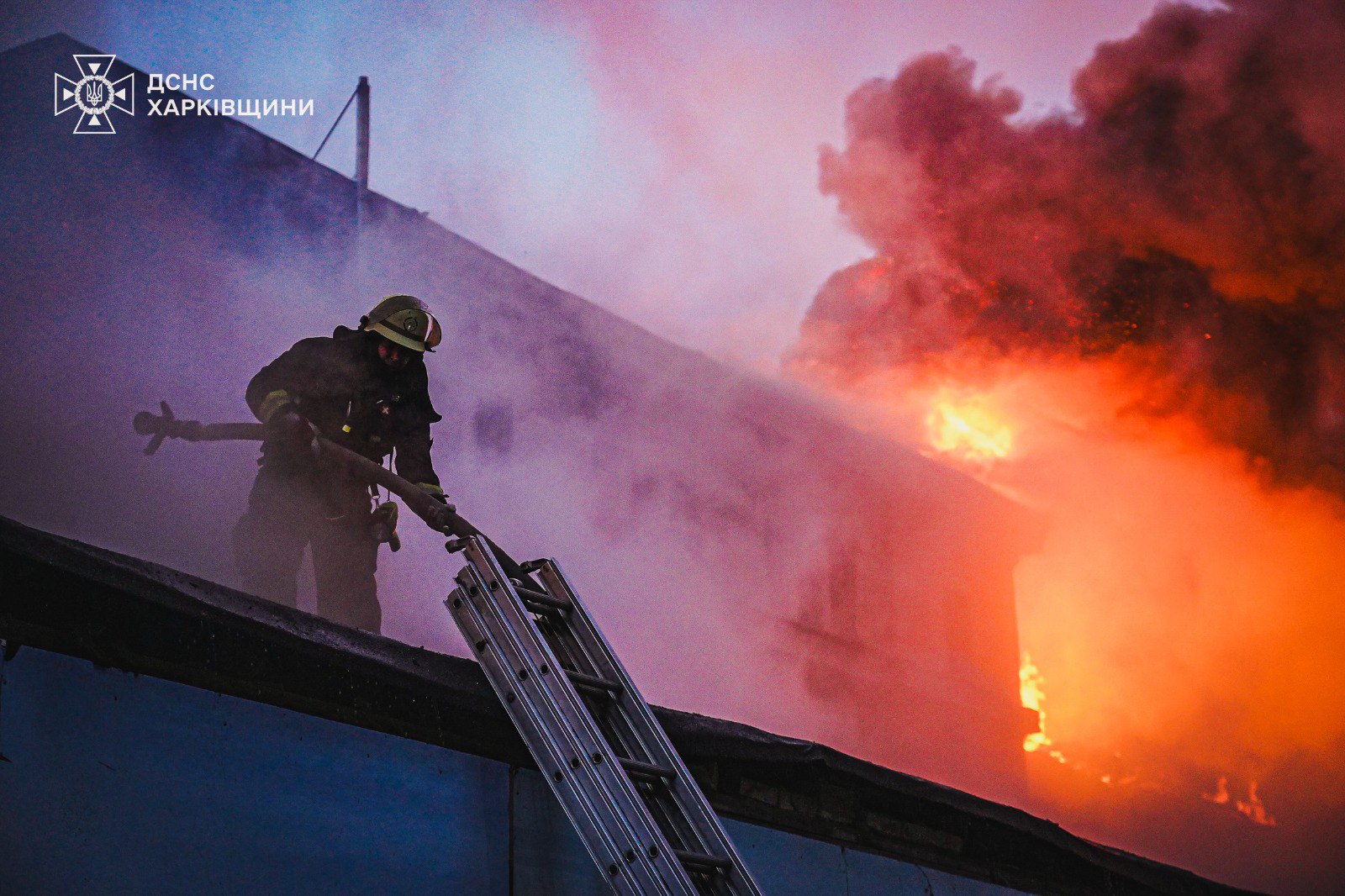 Отмечается, что российские БпЛА попали по гражданскому предприятию в Киевском районе - в производственном и складском зданиях возникли пожары общей площадью более 3900 кв.м.
