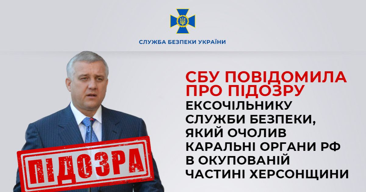 СБУ сообщила о подозрении экс-главе Службы безопасности, возглавившему карательные органы РФ в оккупированной части Херсонщины. Об этом сообщается в Телеграм-канале ведомства 8 февраля.