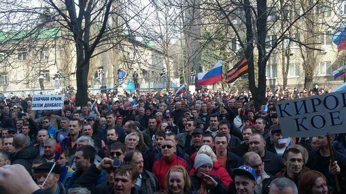 Они требуют освобождения так называемого "народного губернатора" Павла Губарева, арестованного судом на 2 месяца по подозрению в организации массовых беспорядков и сепаратизме.