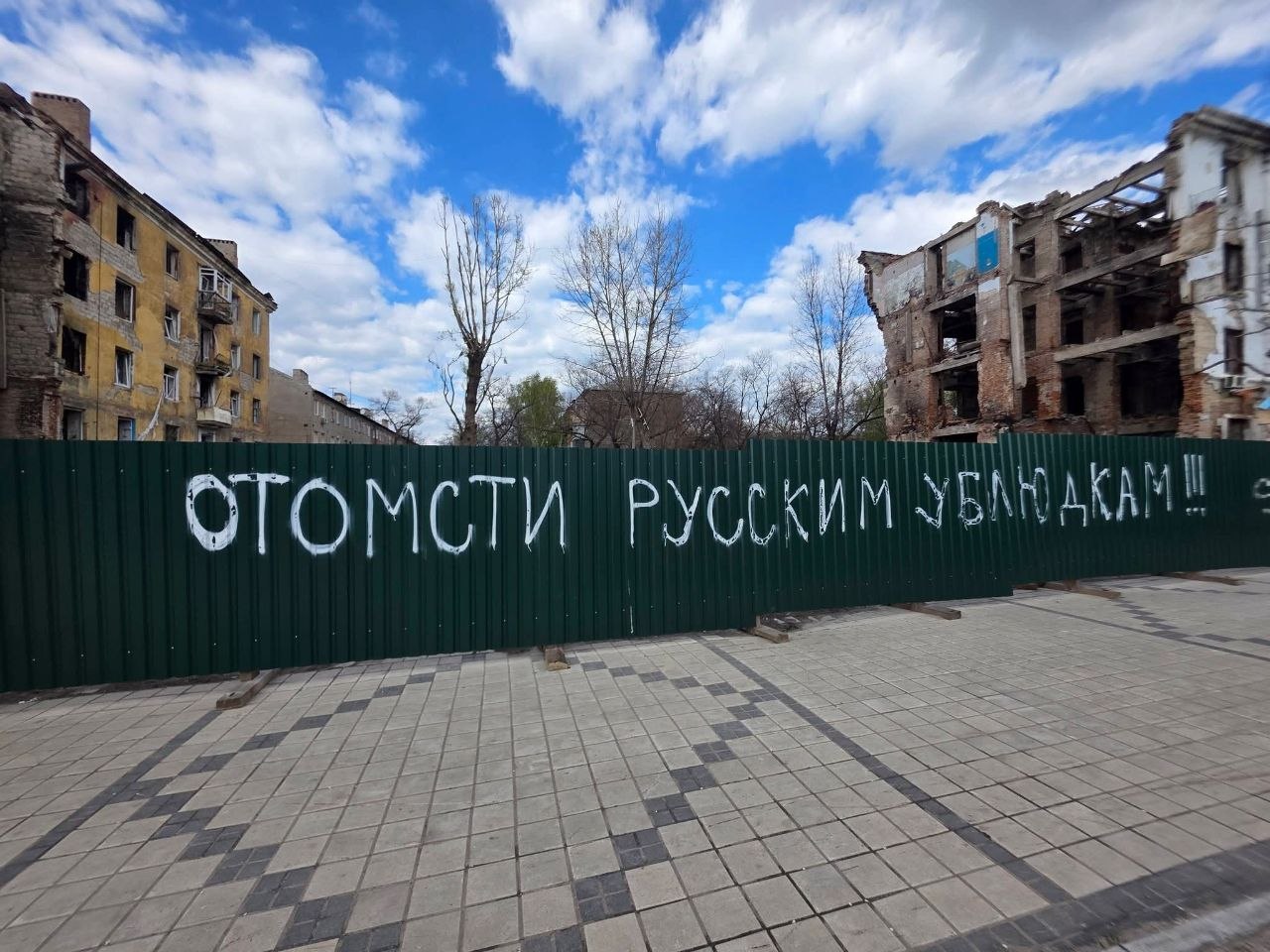 В Сети опубликовали фотографии из Краматорска, на которых своеобразная "наружная реклама" призывает уничтожать российских захватчиков