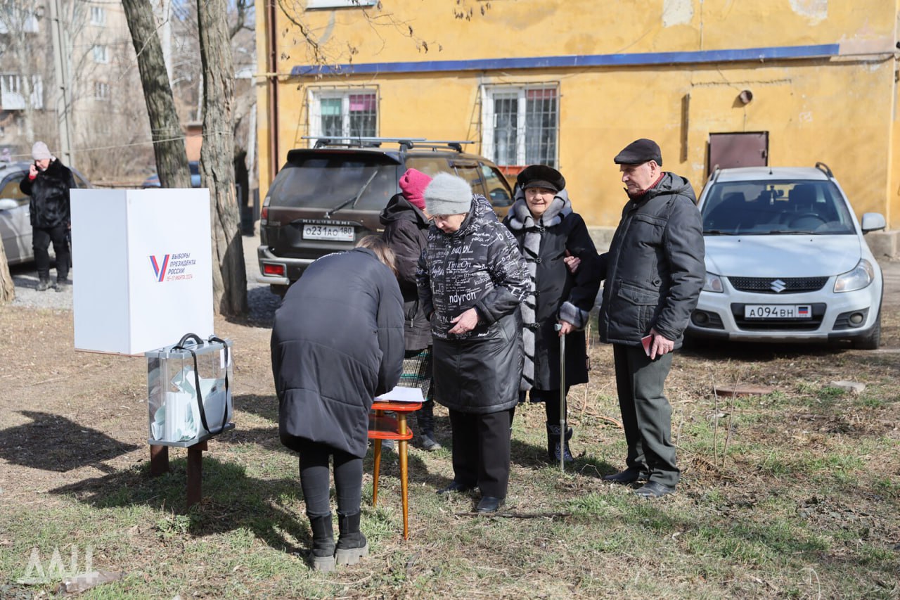 Так называемое "голосование" проходило на протяжении трех дней, можно было не идти на избирательные участки – люди "демократично" голосовали прямо "на придомовых территориях, на территориях общего пользования и в иных местах". А в урны для "голосования" частно сопровождали люди в военной форме.
