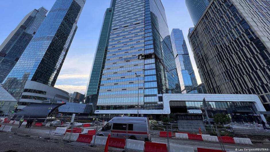"Последствия атаки беспилотников в районе "Москва-Сити", – пишет "DW Главное", разместив соответствующие фото. – В "IQ Квартале" находится, в частности, правительственный комплекс в составе семи министерств и ведомств".