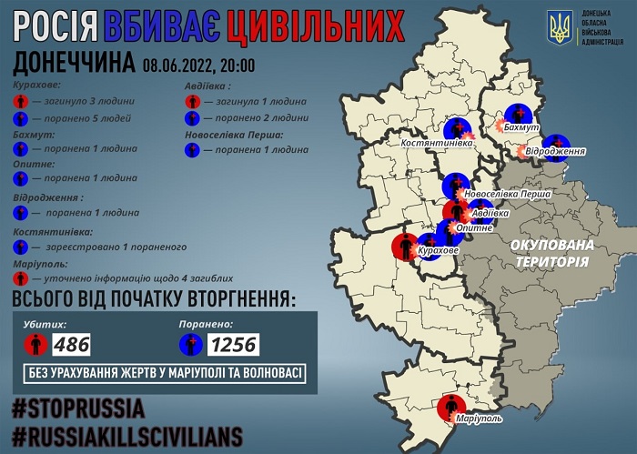 Россияне 8 июня убили четверых мирных жителей Донбасса. Об этом в Телеграм сообщил глава Донецкой ОВА Павел Кириленко.