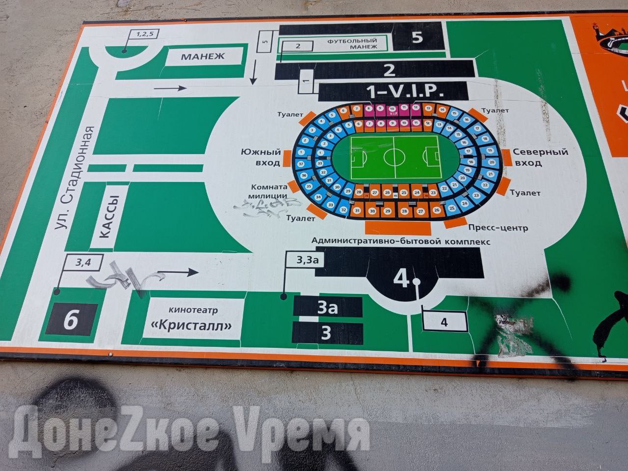 “Внутри трибун, там, где когда-то было футбольное поле, лежат горы земли. Поинтересовались у местных жителей — говорят, ее сюда свозят с новой стройки спортивного городка. А после уже вывезут. Кое-что разрушено, но что-то и уцелело. Например, некоторые сиденья на трибунах, унитазы”, — пишут "журналисты ДНР".