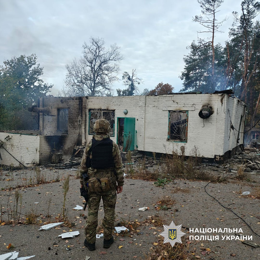 «За 12 октября полиция зафиксировала 2 033 вражеских удара по линии фронта и жилому сектору. Под огнём находились 11 населённых пунктов: города Дружковка, Константиновка, Лиман, Николаевка, Святогорск, Северск, Славянск, сёла Рай-Александровка, Тетяновка, Щурово, Юрьевка. Разрушениям подверглись 18 гражданских объектов, из них 10 жилых домов», — говорится в сообщении полиции Донецкой области от 13 октября. По Северску россияне сбросили бомбу «КАБ-250» — убили гражданское лицо, повредили 4 частных дома. Второй погибший — в Юрьевке Покровского района, по которой враг ударил бомбой «ФАБ-250» с УМПК. Разрушен частный дом. По Константиновке оккупанты нанесли авиаудар бомбой «КАБ-250» — повреждены 4 многоквартирных дома и образовательное учреждение. В Дружковке ударом БПЛА «Италмас» повреждены два частных дома. Славянск войска РФ атаковали двумя БПЛА «Италмас» — есть повреждения на территории спорткомплекса. В Николаевке в результате попадания трёх авиабомб повреждён инфраструктурный объект. В Рай-Александровке БПЛА «Молния – 2» повредил амбулаторию. В Святогорске Россия двумя FPV-дронами поразила два гражданских автомобиля. В Тетяновке повреждён частный дом, в Щурово — столовая. Кроме того, сегодня ночью россияне четырьмя дронами обстреляли Краматорск. Повреждены административное здание и промышленная зона. Информации о пострадавших не поступало. Как сообщалось, ночью россияне нанесли четыре удара дронами по Краматорску.