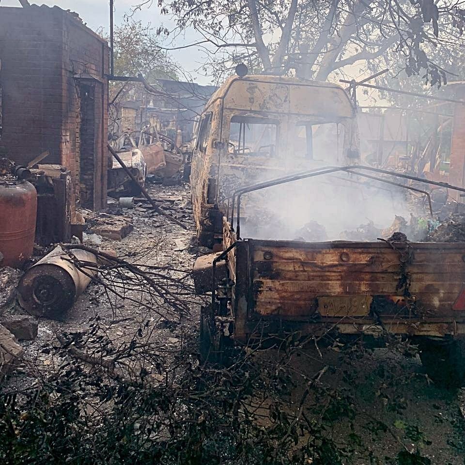 Враг разрушил и повредил 89 гражданских объектов, среди которых 85 жилых домов, областная специальная школа-интернат, кинотеатр, коксохимический завод, автобаза.