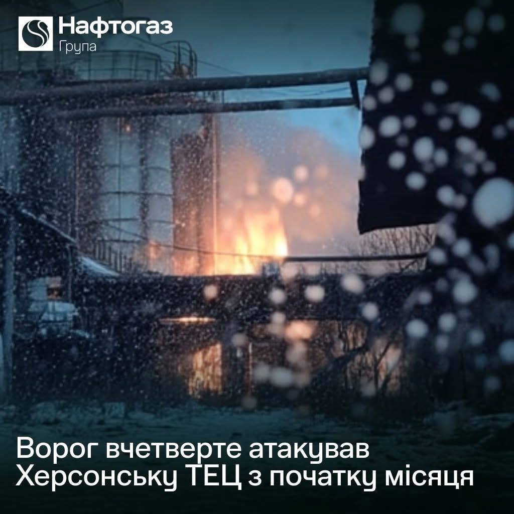 «Уже в четвертый раз россияне атаковали Херсонскую ТЭЦ с начала месяца. Враг в течение суток наносит артиллерийские удары. Зафиксировано не менее пяти попаданий», - сообщает вечером 6 февраля Телеграм-канал NaftogazUA.