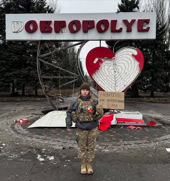 Защитница Украины Анастасия Клищенко сделала серию фотографий с плакатами и напоминанием о том, что Доброполье Донецкой области страдает от российских атак. В населенном пункте вместо праздничной елки и суеты слышны взрывы. Оккупанты ежедневно пытаются штурмовать город. В Доброполье до сих пор остаются гражданские