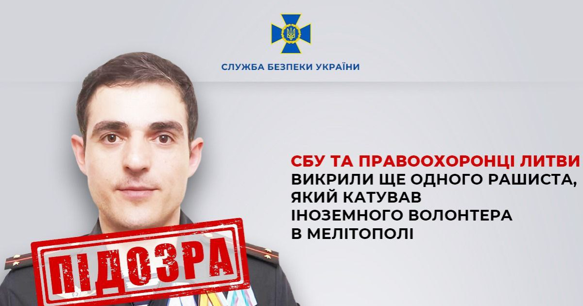 "Служба безопасности Украины, Национальная полиция и Офис Генерального прокурора совместно с правоохранительными органами Литовской Республики разоблачили еще одного рашиста, который пытал литовского волонтера во временно оккупированном Мелитополе. Соответствующую доказательную базу удалось собрать по результатам работы международной следственно-оперативной группы", - сообщили в Телеграм-канале СБУ 8 декабря.