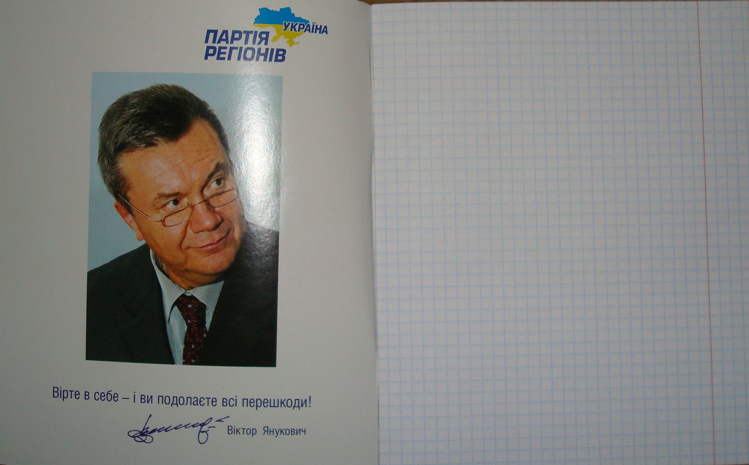 В Івано-Франківську дітям роздають зошити, на внутрішній стороні обкладинки яких зображений В.Янукович і емблема Партії регіонів.