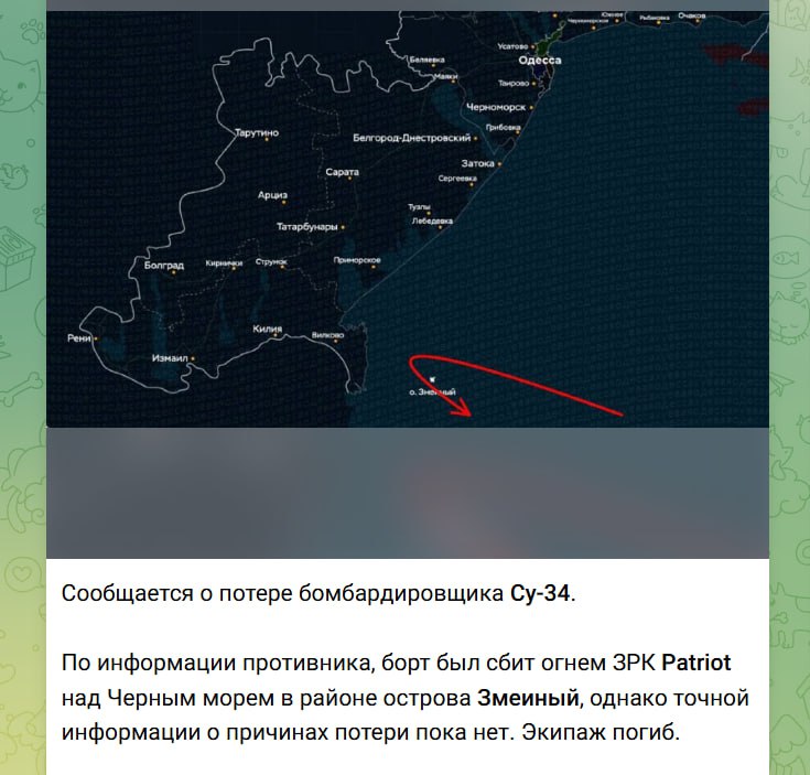 Силы обороны Украины успешно поразили вражеский Су-34 в акватории Черного моря, - сообщает ряд российских милитари-пабликов вечером 28 января.