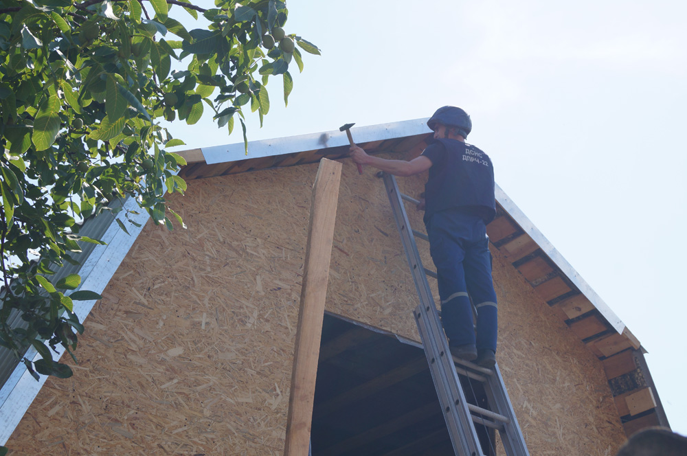 Спасатели восстанавливают пострадавшие в результате боевых действий жилые дома в 6 прифронтовых населенных пунктах Донецкой области, - сообщает пресс-служба ГУ ГСЧС в регионе. В настоящее время ремонтно-восстановительные работы проходят в поселках, расположенных вблизи линии разграничения на юге области – Лебединском, Бердянском, Гранитном и Сопино, а также в городах Марьинка и Красногоровка. Спасатели ГСЧС латают крыши, восстанавливают остекление окон и помогают восстановить поврежденные простенки. Всего с начала проведения работ восстановлено более тысячи частных домов. В частности, в прифронтовых поселках Приазовья работы завершены по 11 адресам.
