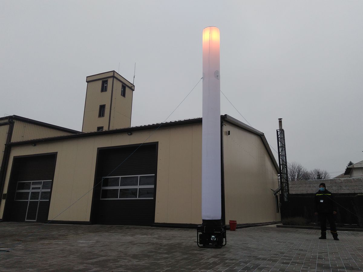 Отмечается, что осветительный «столб» высотой 5 метров изготовлен из специальной воздухо-влагонепроницаемой ткани.