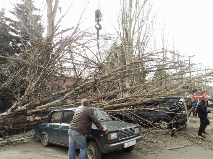 Старое дерево рухнуло на автомобили, стоявшие на неохраняемой стоянке по улице Маяковского в г. Дзержинске Донецкой области. Об этом сообщили в Управлении Госслужбы по чрезвычайным ситуациям в Донецкой области.