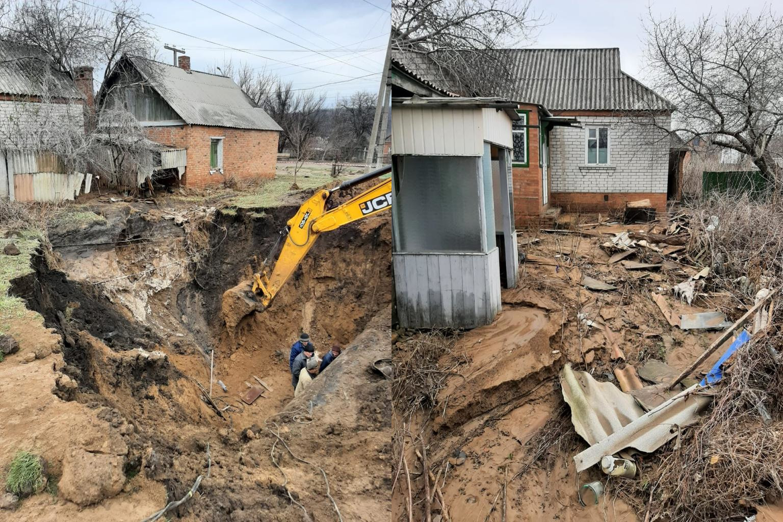 Сегодня около полуночи произошел порыв Второго Донецкого водопровода в районе Кронштадтского переулка и пер. Григория Сковороды. Из-за 3,5-метровой трещины были затоплены подвалы и выгребные ямы в частных домах, размыта грунтовая дорога.