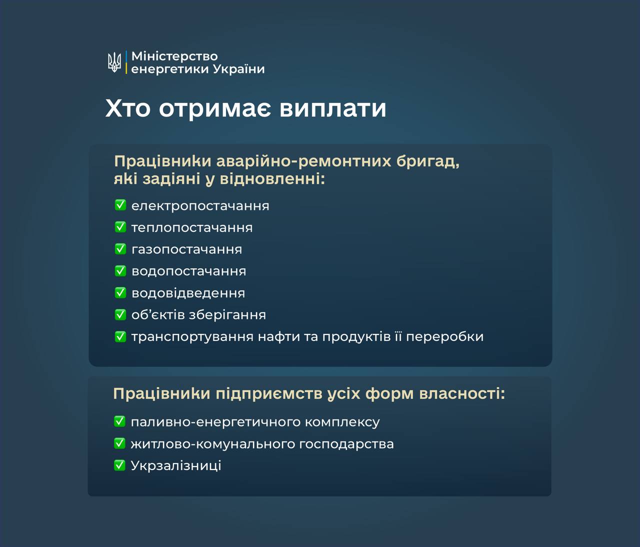 ☑️ жилищно-коммунального хозяйства☑️ «Укрзализныци» — от бригадиров до рядовых специалистов, которые непосредственно задействованы в восстановительных работах.