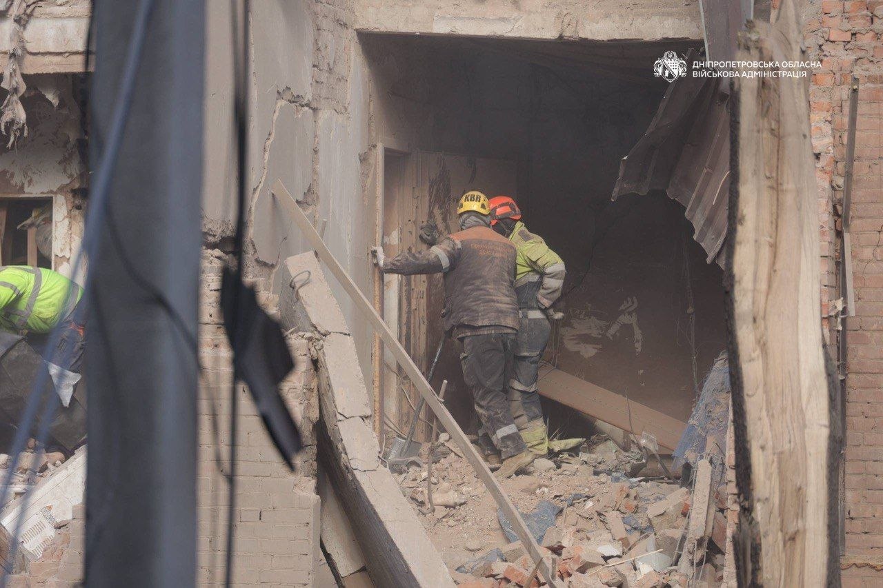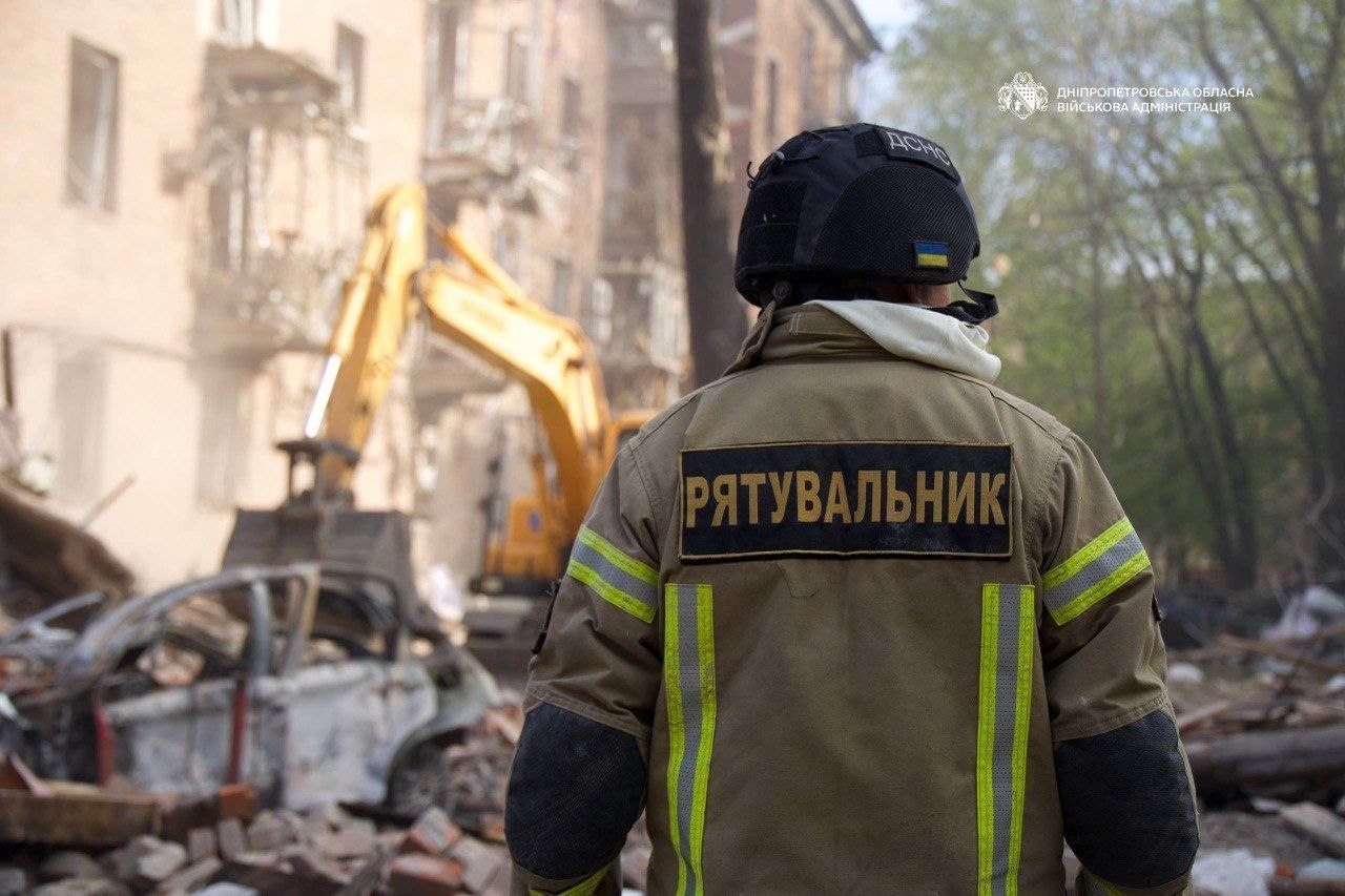 «Трое погибших. Еще одно тело извлекли спасатели из-под завалов дома в Днепре, по которому россияне нанесли удар этой ночью. Спасатели продолжают разбирать руины. Еще ищут людей», — сообщил глава Днепропетровской ОВА Александр Ганжа 25 апреля.