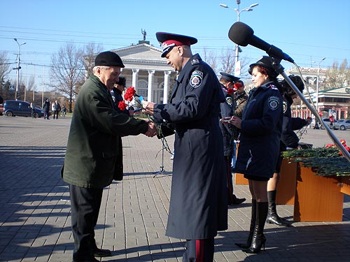 Начальник ГУ МВД в Донецкой области Николай Купянский поздравил ветеранов милиции и действующих сотрудников органов. Ветеранам вручили цветы, грамоты и памятные значки.