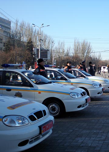 Молодым офицерам МВД были присвоены очередные звания, а подразделениям ГАИ торжественно передали ключи от служебных автомобилей.