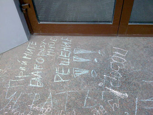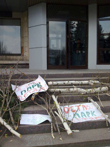 Чиновникам эта протестная акция запомнится остатками срубленных деревьев на ступеньках здания и многочисленными надписями цветными мелками вокруг горсовета.