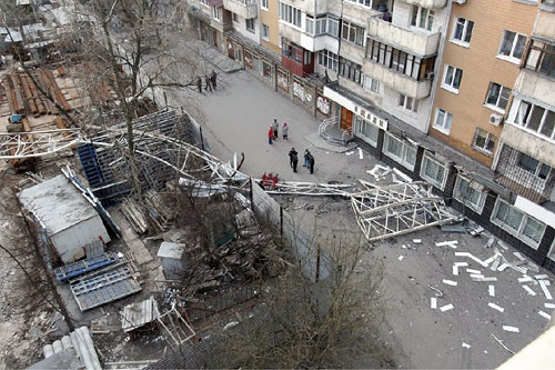 В Донецке днем 12 апреля на стройплощадке в районе бывшего автовокзала «Северный» упал строительныйй кран.