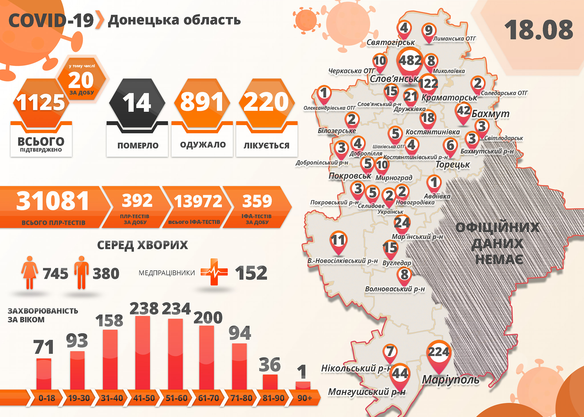"Обращаю внимание, что вчера положительный диагноз был неправильно определен 48-летней жительнице Дружковки, поэтому на самом деле общее количество больных в этом городе составляет 21 человек, а не 22", - отметил он.